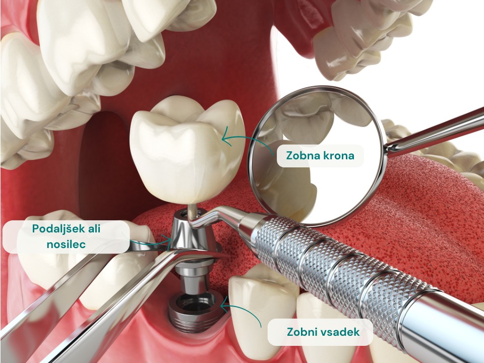 Podaljšek ali nosilec, del, ki povezuje zobni vsadek s krono.